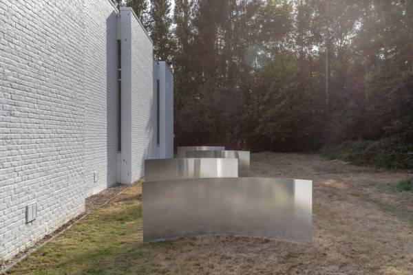 Museum Dhondt-Dhaenens is proud to unveil Frame Series, Work No. 10 by Meta Drčar, the latest addition to the museum’s sculpture garden. The new commission is the result of Drčar’s 2021 Art & Architecture Residency at the Woning Van Wassenhove. The reflective aluminium sculpture addresses the basic materials and forms of the Woning to instigate the viewer’s corporal movements.